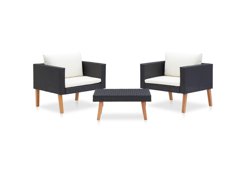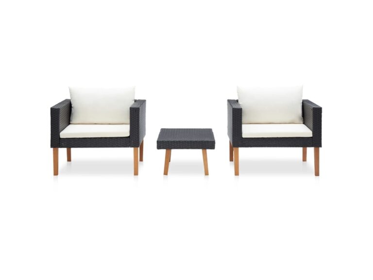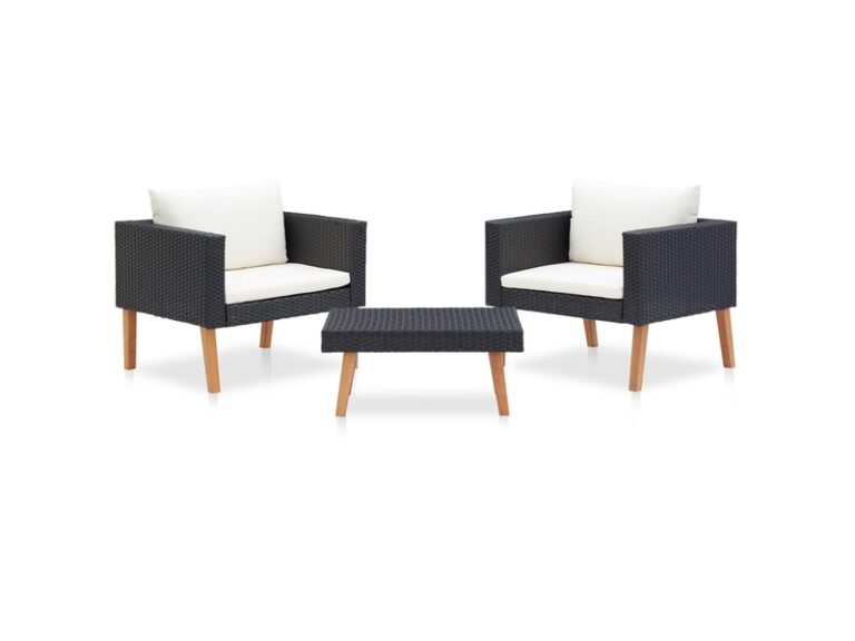 Chic salon bas de jardin 3 pcs avec coussins – résine tressée noir – 76x67x60 cm