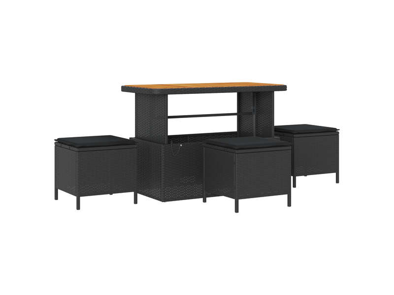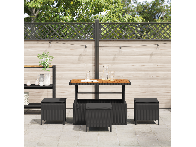 Vidaxl ensemble de salle à manger de jardin 4 pièces avec coussins noirs en poly rotin et acacia