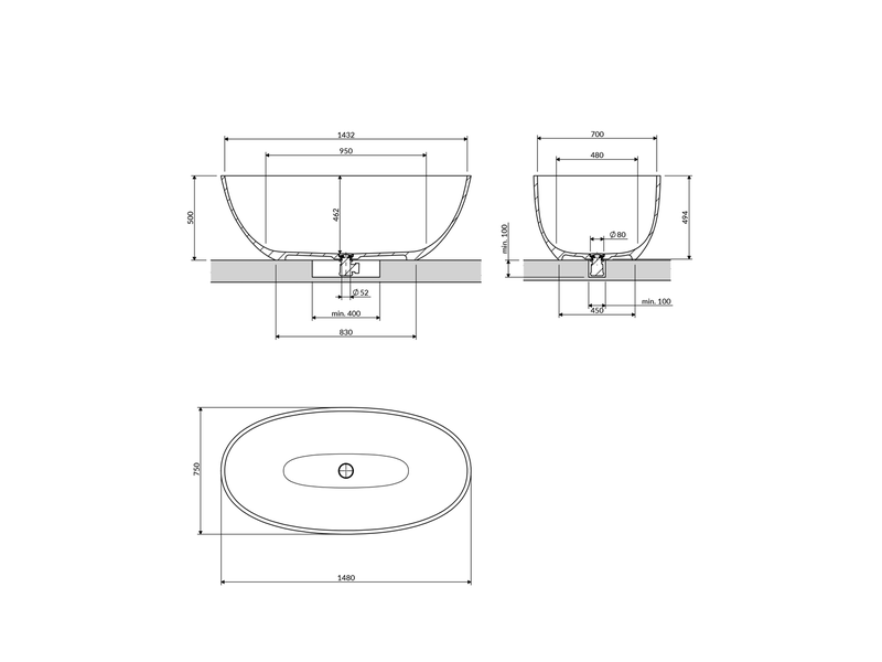 • x1 – Baignoire îlot – SHELL – 148 x 75 cm