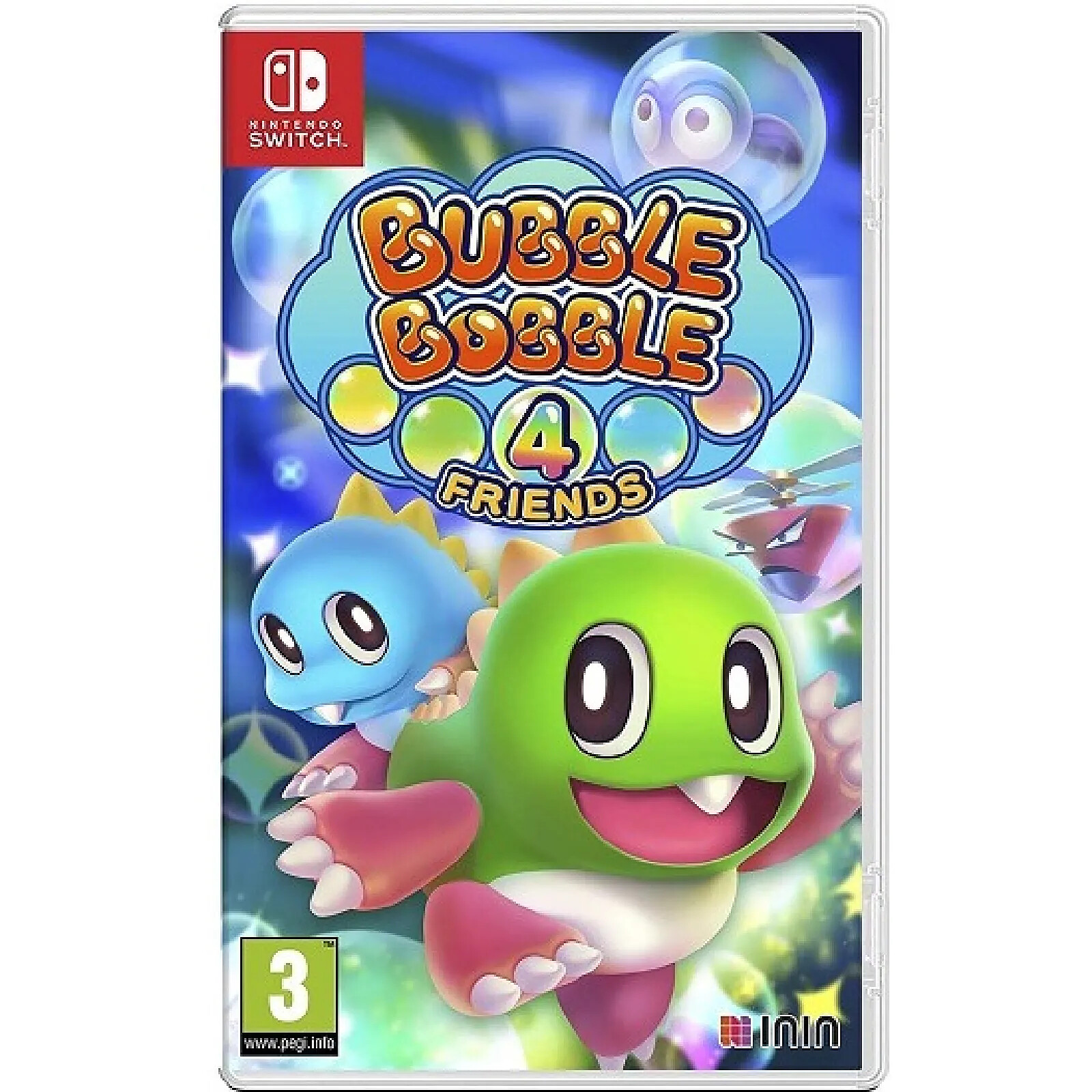 Bubble Bobble 4 Friends est un jeu d’action-aventure disponible sur Nintendo Switch, adapté aux joueurs dès 3 ans. Ce titre moderne revisite le classique Bubble Bobble avec de nouveaux niveaux, graphismes améliorés et un gameplay coopératif jusqu’à 4 joueurs, offrant une expérience ludique et familiale.