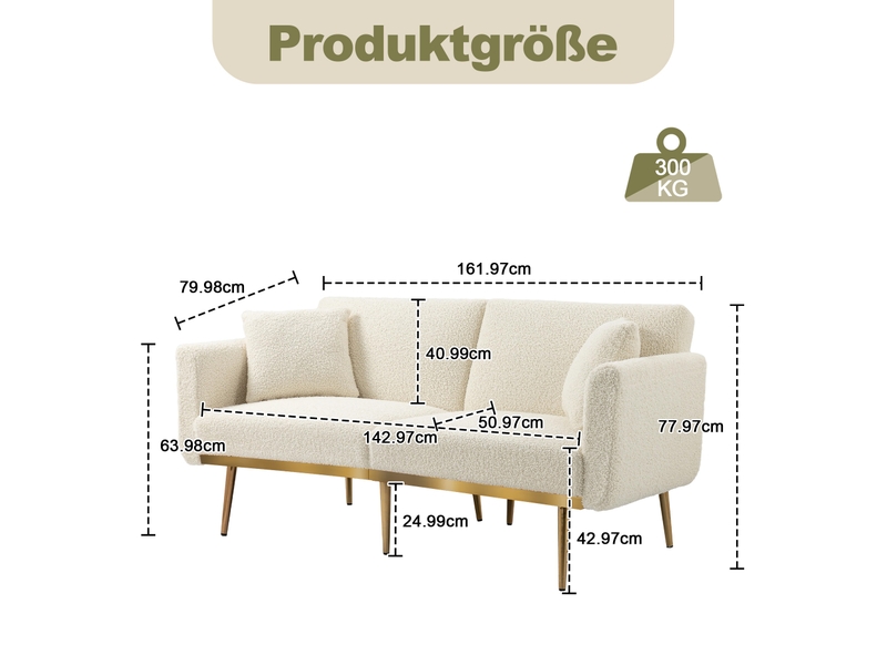 Canapé droit convertible OKWISH 2 places – Tissu blanc