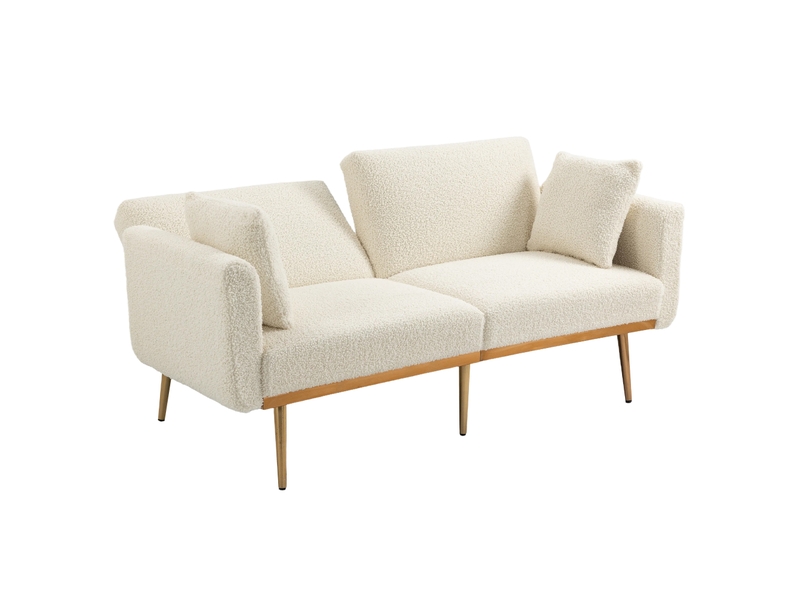 Canapé convertible 2 places au style moderne, revêtement blanc éclatant, pratique pour les petits espaces avec fonction couchage.