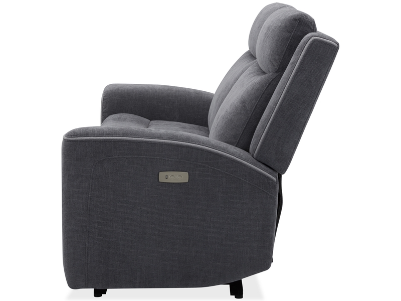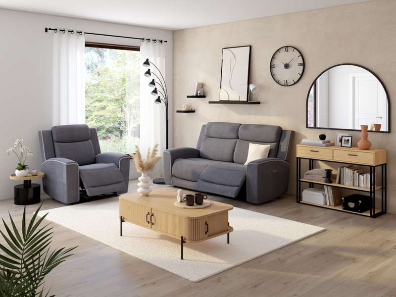 Canapé 3 places avec 2 relax électriques, tissu gris foncé, idéal pour un salon moderne et confortable.
