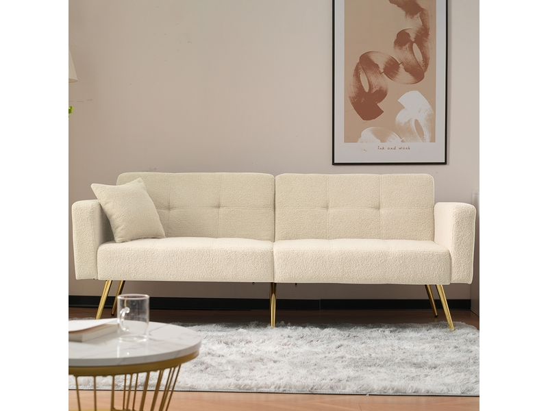 Déplimousse 2 places pratique et léger en tissu beige, convertible en lit d’appoint confortable. Parfait pour les petits espaces et les invités de dernière minute.